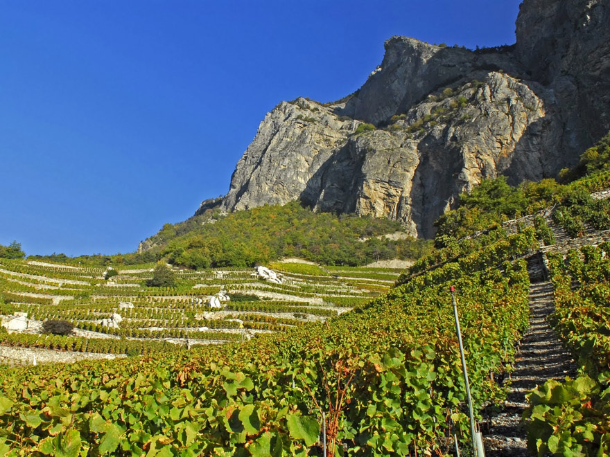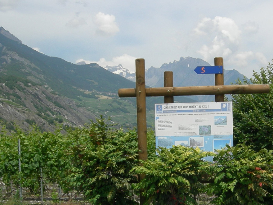 Boucle au départ de St-Pierre-de-Clages à travers le cône de la LosentseCe sentier de 11 km vous invite à découvrir un paysage façonné par la culture de la vigne et les bisses construits pour son irrigation.